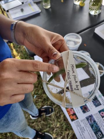 Ramsey helped lead open-air trolley tours of the farm’s research plots, shuttling attendees between stops where they were able to walk around, see the experimental crops up close, and listen to faculty and graduate students discuss their research onsite.