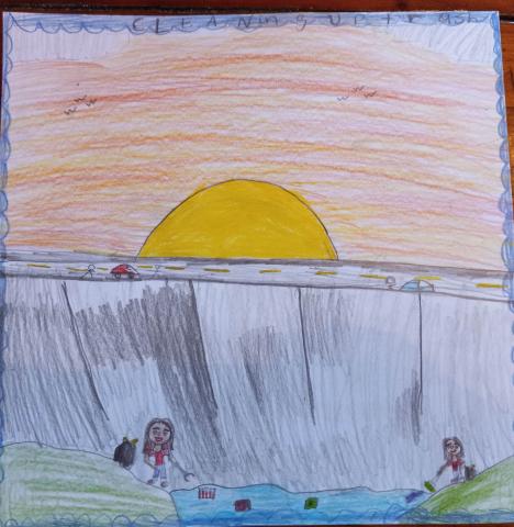 Allie’s drawing has vivid color, excellent detail and a great theme of cleaning up the trash on Norris Lake.