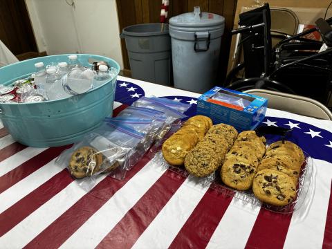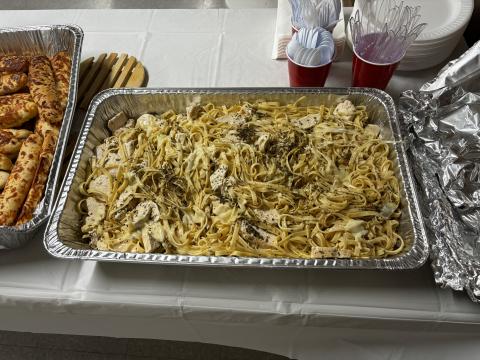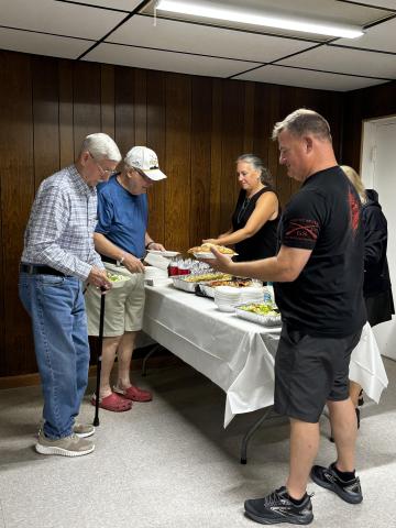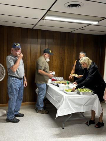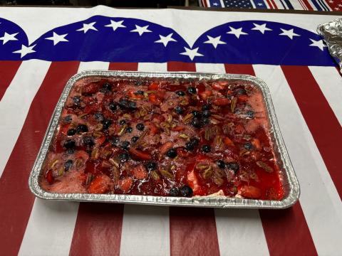 Delicious food aromas hit you as you walked in the door of the American Legion Hall on June 3. If you thought you weren’t hungry before, the wonderful smells of the Chicken Alfredo dinner immediately changed your mind. And there was so much food – all expertly prepared by the cooks of the Veterans Volunteers. In addition to the huge pan of the Alfredo (see photos), there were pans of Caesar Salad and individual loaves of garlic bread that were baked to perfection. The choice of yummy cookies would have been enough of a dessert, but they also offered an amazing low sugar Strawberry/Blueberry Pretzel casserole. These monthly dinners are prepared with love and thankfulness for our Veterans and are absolutely free meals. According to the US Census Bureau, about 7% of the Union County population is made up of Veterans –somewhere around (+ or -) 1400 people. Yet, unfortunately, a very small number of Vets come for the monthly meal and/or the monthly meeting. I have to wonder why.