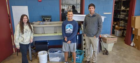 Right now, the students are raising brown trout in a tank they built themselves. Mr. Edwards reached out to Trout Unlimited, which is a non-profit organization for the conservation of trout and other fish, earlier in the school year. Through them, he was able to procure trout eggs and most of the items necessary to raise the trout, at no cost to the school. The students have worked diligently since the trout eggs arrived, ensuring that they maintain the water temperature and quality required for the fish to thrive.