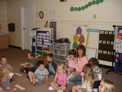 Head Start children waiting to have their eyes tested.