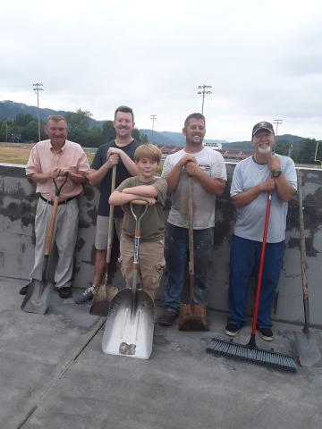 It stands up on a hill behind the high school and overlooking Wilson Park. Many have seen it from a distance, but not too many people stop by. In different parts of the US, some of the walls honoring and remembering Veterans are made of black granite or marble. The concrete Union County Veterans Wall was first painted black to represent the bleakness, the abyss some veterans feel when returning to civilian life and there is a touch of red along the top to represent the blood that was shed during conflicts. The wall today is gray stucco to resemble the look of granite with black marble plaques. There are many flags flying over the wall: the black flag of the Prisoner of War/Missing in Action, the TN State flag, and several American flags.