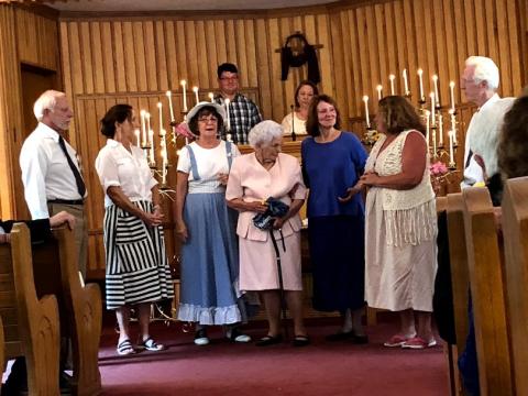 On Sunday, June 23, 2019, at 10:30am, the church invited members, guests, and the community to a 150-year celebration. Upon walking into the gorgeous, traditional white country church, while dressed in old-time attire, guests were greeted and given programs and fans for the service. The Choir opened with “Precious Memories”. Member Sharon Lynch was introduced by Rev. Skeen and presented the church history to the congregation.