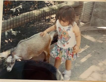 The summer she was 3 years old, my dad took us on a family trip to the zoo. Personally, I wasn’t too excited about the smell or walking around on such a hot summer day. But as for Sara, I didn’t want her to get too hot, so I put her in a cute sundress. Everything went well until we reached the petting zoo area. As soon as we got her out of the stroller, she began to pet the animals as she cooed, “Awwwwww.” We bought food so she could feed the goats. She giggled and laughed as they ate from the palm of her hand. Let me tell you, when I was her age, there was no way I would have hand fed a goat. I would be too afraid that it would bite me. In fact, I let Sara, Tim, and my dad do all of the feeding. At one point, I looked away. I don’t remember what caught my attention, but that’s when I heard Sara’s shrill scream. My heart leapt into my throat. I imagined a goat with its teeth sunk into her hand. But when I turned back around, I saw a goat chewing on her skirt. Tim jerked her skirt away from it. Since the threat and her fear were gone, Sara immediately went back to petting the goats.