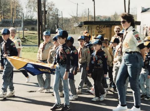 Back in 1989, Pack 275 was affiliated with Niota Baptist Church, but they often had activities at the Niota School, especially periodic pack meetings where the boys received badges and pins to show their progress.