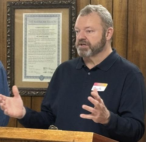 Mark Cook, the Union County Veterans Service Officer (VSO), spoke about Veterans' benefits. Mark served in the West Virginia National Guard and was mobilized in support of the Iraq War. Union County is 5th from the bottom of Tennessee counties in awarding benefits to qualifying Veterans. Union County Veterans are simply not getting the support and respect they earned. The Union County Veterans Service Officer assists veterans, their family members, and survivors in obtaining federal and state veterans’ benefits they have earned through their military service.