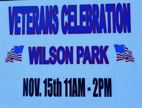 Don’t forget! Mark your calendar. Set your alarm—Saturday, November 15, from 11:00 to 2:00 at Wilson Park. Bring a chair and set awhile. Please help us celebrate our Veterans!