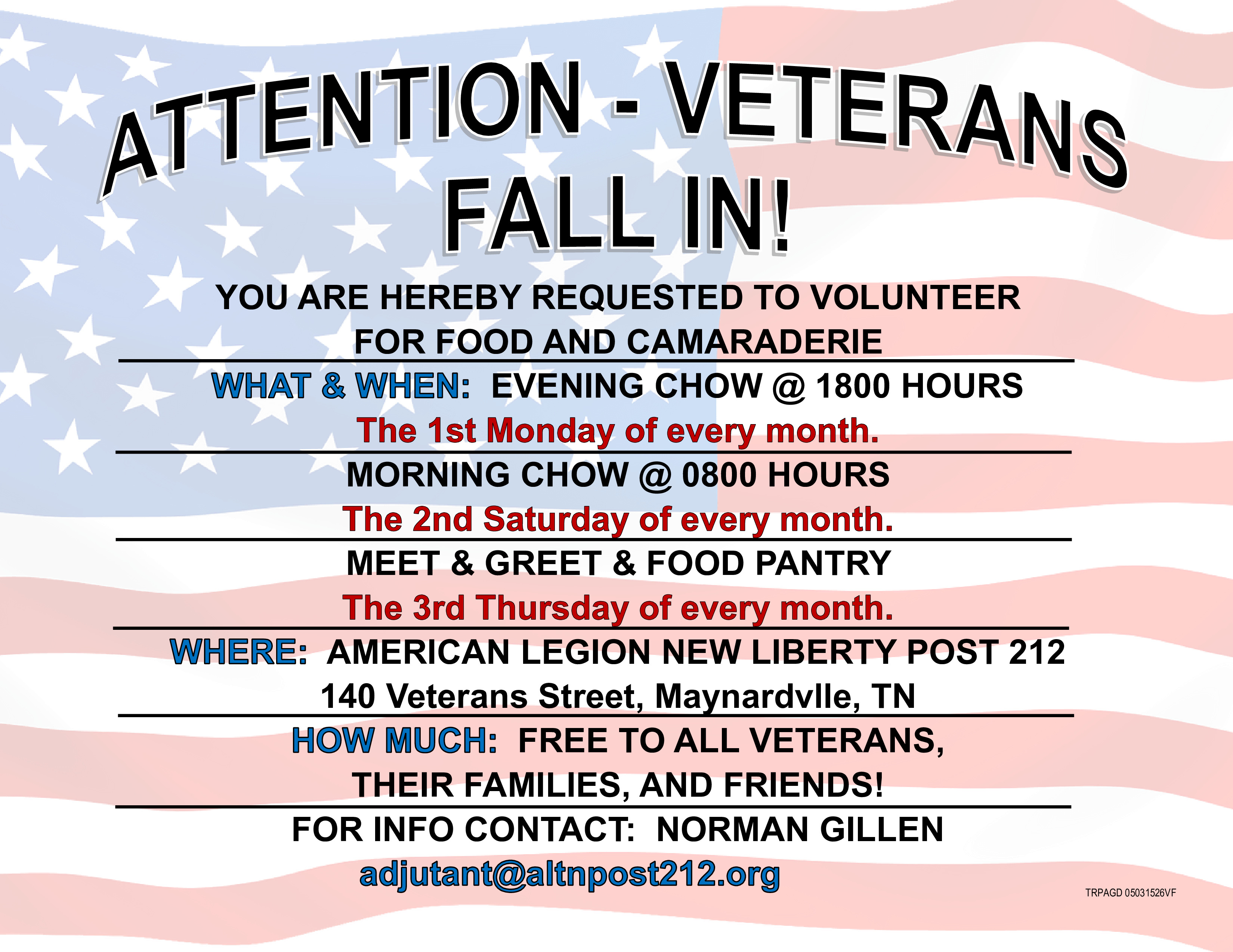 FREE Breakfast Coming up April 11! Tags Veteran Breakfast April 11, 2026 email facebook linkedin twitter pinterest Log in or register to post comments