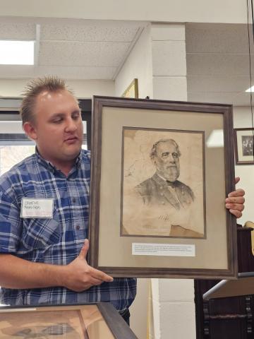 The HCA donated three historical items to the Union County Museum. One item is a photograph dated circa 1895 of the six Hamilton brothers and the great grandsons of William Hamilton: William Lay (Will), Francis Marion (France), John Alvis, Aaron, Alexander Lafayette (Fate), and Jasper Terrell (Jas). A second photograph includes Aaron Hamilton and his wife Phoebe Catherine, who were married in 1860 and resided in Eldorado, Oklahoma. The final photograph was found underneath the the photograph of the brothers and was glued to the board used to support the frame. It is a picture of General Robert E. Lee. All of these photos, graciously accepted by Union County Historical Society President Ellen Perry, can be viewed at the Union County Museum. Arthur Bohannan will further explain how William's grave was located and other cemetery studies on Sunday, February 15, 2026, at 2:30 at the museum. The public is welcome.