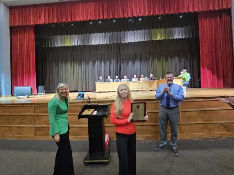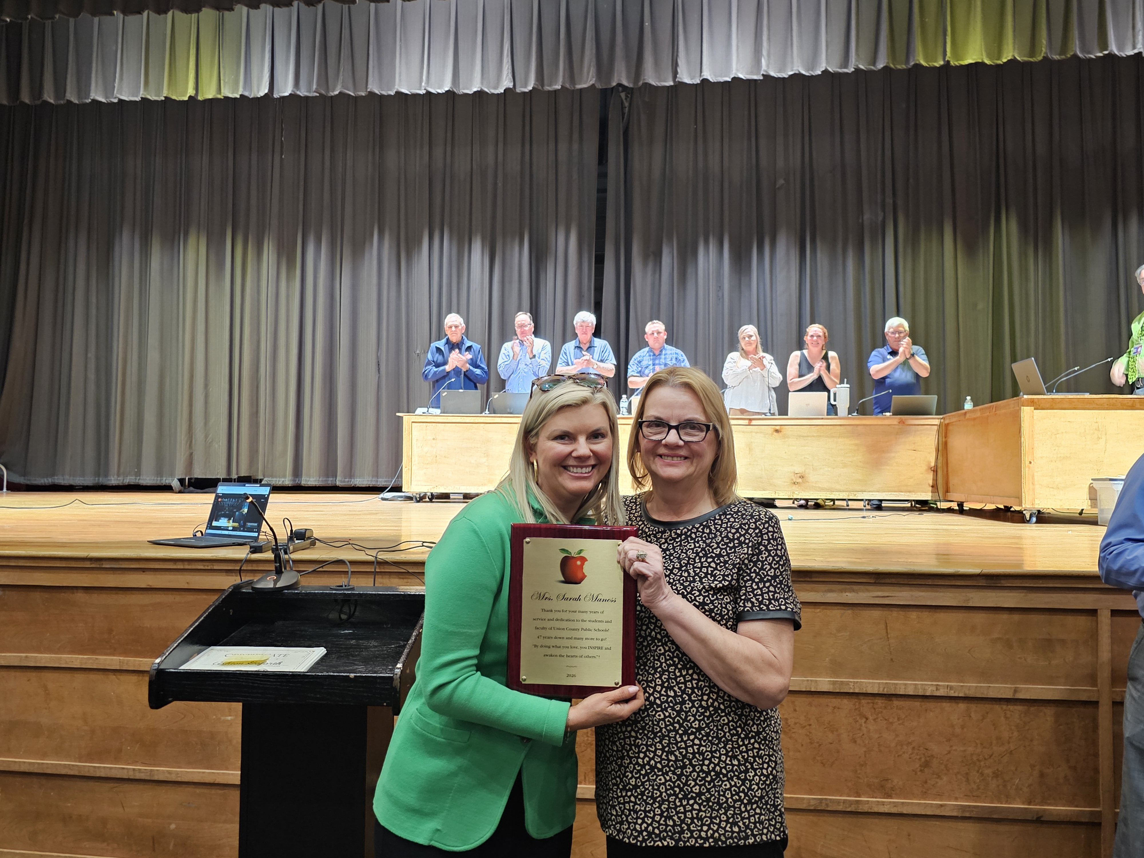 The Union County Board of Education honored two current employees for their many years of service. Sarah Maness, a special education teacher at Horace Maynard Middle School has been teaching and mentoring children with special needs for 47 years. She established the Comprehensive Development Class at Maynardville Elementary. She has impacted the lives of numerous children in Sharps Chapel Elementary, Maynardville Elementary, and presently at HMMS. Sarah's students learn life skills, basic numeracy and literacy as well as social skills. Sarah has volunteered to manage the Heritage Festival Information Booth for over 10 years. She also chairs the Membership Committee for the Union County Education Association. Dr. Lauren Effler stated," She is my hero, but she is also my Mom" as she hugged her, thanked her, and gave her the Special Recognition for Service Award.