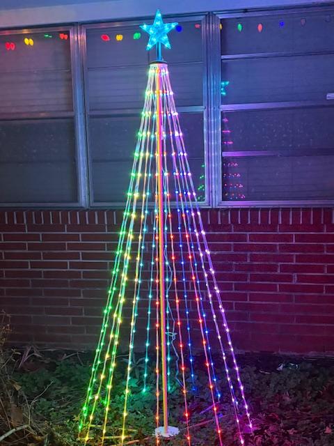 We did find regular blinking lights. Then we bought a new-fangled Christmas tree to display outside. It was easier to assemble than I thought it would be. We placed it in front of our house and turned it on, but the star on top wouldn’t light. Tim fussed as he fiddled with the wires. I remembered seeing the tree’s remote control in the box. When I retrieved it, I noticed a button labeled “Tree Top.” I pointed it at the tree and pushed the button. When the star lit up. Tim said: “I don’t know what I did, but it worked!”