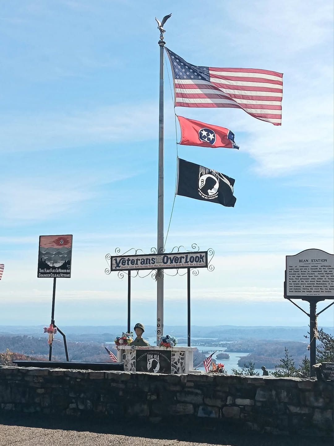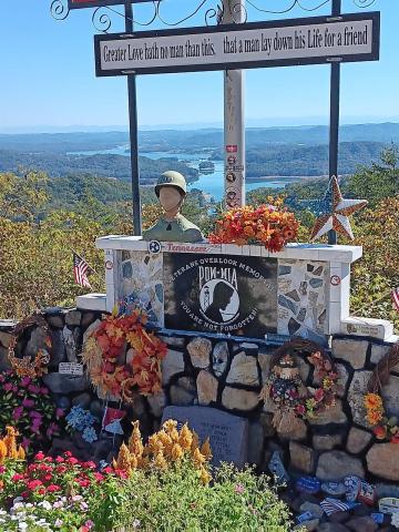 The Veterans Overlook Memorial is dedicated to the veterans of Grainger County and all veterans who served. Known for its stunning valley views and heartfelt tribute, this scenic overlook features a well-maintained memorial honoring veterans with fresh flowers, tribute rocks, and informative plaques about the area's history.