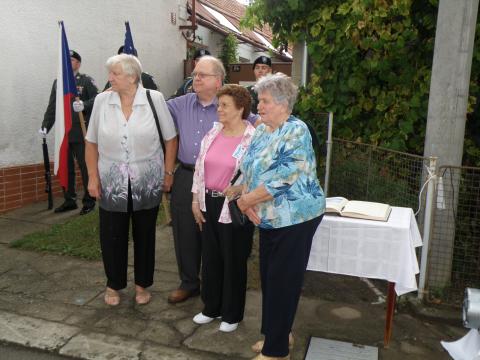 Jiřík Fleischer speaking during the ceremony at which a commemorative plaque was unveiled in August 2009 at the home of the Pešát family in Přečkovice, where they hid Joseph E. Sallings, a side gunner from the Tail End Charlie aircraft, from August 1944 until the end of the war. Photo submitted by Vlastimil Hela