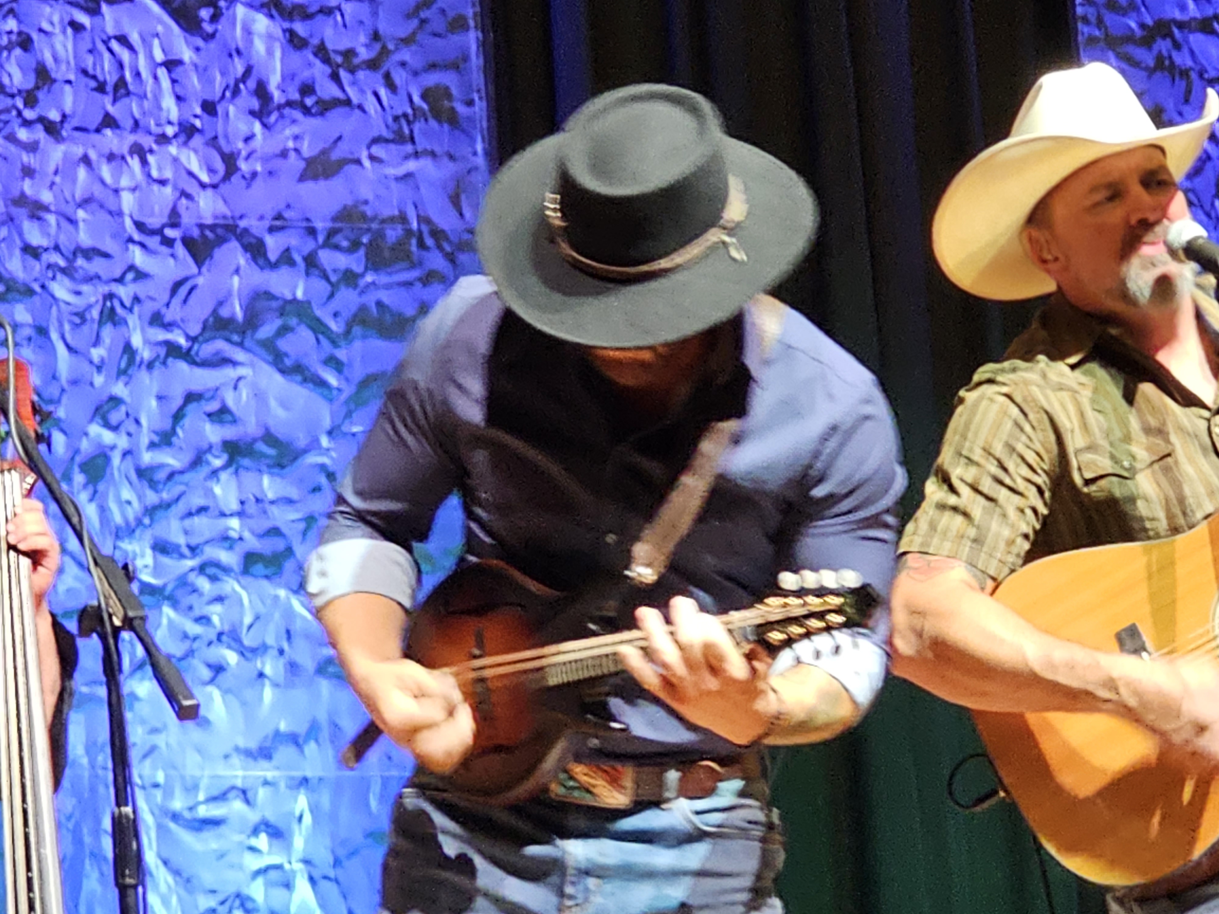 Tim Shelton Syndicate played and sang with passion and emotion at the Union County Opry on August 5, 2023. The band opened with a fast paced song from their debut album titled Ain't got No Woman with Shelton carrying the melody. They followed with Middle Age Crazy by Jerry Lee Lewis. Then covered songs by Ralph Stanley and the Stanley Brothers. Joe Booher nailed Killin in Griffin and proceeded to wow the audience with his mandolin picking throughout the performance. Jr. Williams, who played guitar and banjo, owned Roving Gambler. People hummed and sang Deep River Woman along with the band. Rounding out the band were Avery Welter, who provided vocals and guitar picking along with Sam Lauderbaugh, who played an amazing bass. The melodic songs were memorable, but it was the instrumentals that brought the audience to its feet as people witnessed some masterful picking, not just strumming the melody. After the show, the whole band came out to shake hands, take pictures, give hugs, sign autographs, and share their debut album.