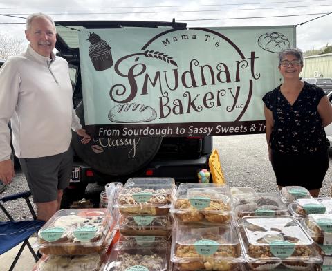 Diane and David Trandums started out with Mama T’s Bakery, but as David’s sourdough bread (which Dave loves making) became increasingly popular (and it IS delicious), they decided that the bakery name should reflect both their efforts. What to do? Well, spell their last name backward, of course! And Smudnart’s Bakery was born! There is a variety of baked goods from cookies to brownies to cakes to breads. All are beautifully crafted and delicious.