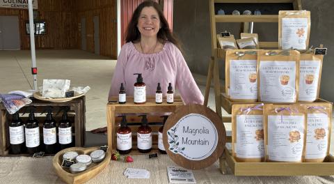 Tanya Leehans’ Magnolia Mountain had her first Market appearance with homemade natural body and home care products. Tanya’s dad was the VP of a natural supplement company, and she grew up using and learning about natural ingredients. Her goat milk soap, mango, and shea butter are all beautifully and professionally packaged.