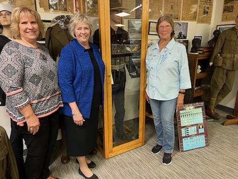 On November 7, 2024, the display items were obtained, and the exhibit was completed for viewing. TSDAR State Regent Emily Robinson and their Grant Coordinator Jill Jones Lazuka traveled to Maynardville and met with Veronica Fox of the Ocoee Chapter of TSDAR (and museum volunteer) and Judson Palmer, Board Chair of the Union County Historical Society (UCHS) to review and approve the exhibit.