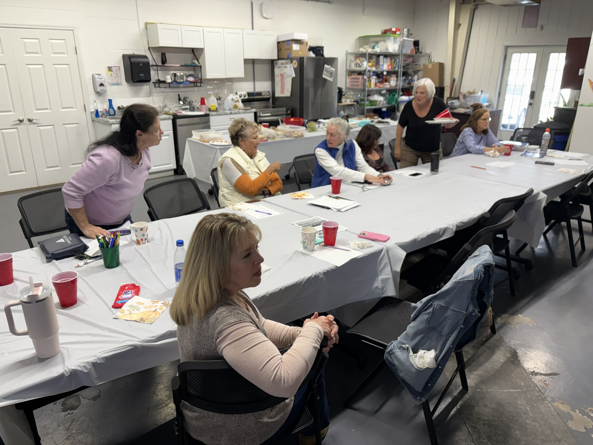 This month’s meeting featured a Soup and Sandwich luncheon, with members bringing a wide variety of soups, sandwiches, desserts, and side dishes to share. The group enjoyed warm conversation and a strong sense of community as they ate together.