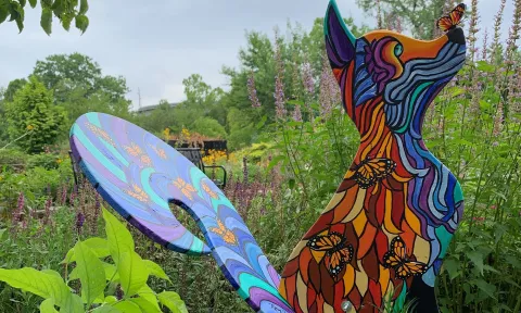 One of many Fanciful Foxes on display this summer at the UT Gardens, Knoxville, is “Butterfly Miracles” by artist Mary Joslin. Look for it at the Gardens’ Monarch Waystation. Image by J. Newburn, courtesy UTIA.